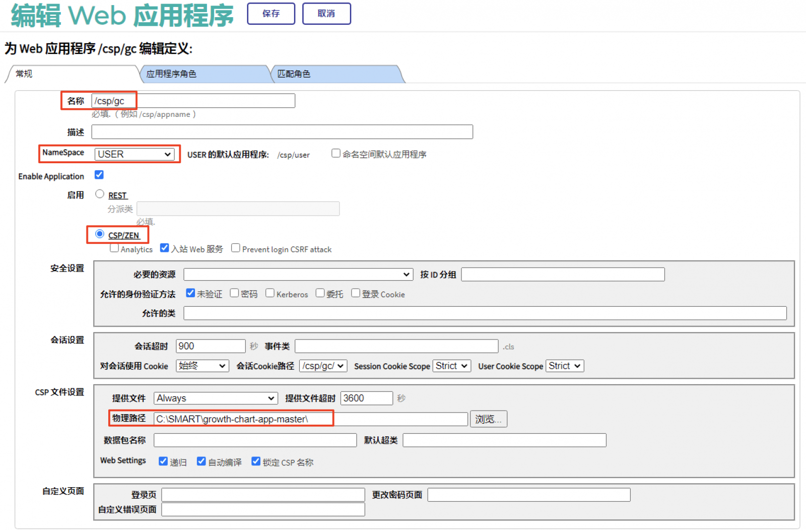 “CSP文件设置>物理路径”中,选择您下载并解压的SMART on FHIR应用的路径。