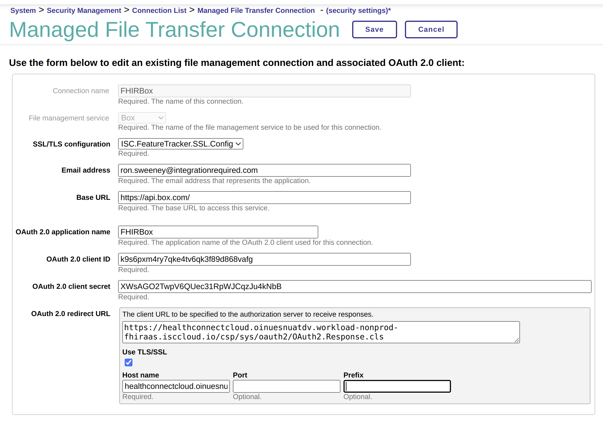 - 在您的 InterSystems FHIR 服务器、HealthConnect 或 I4H 上配置 MFT 连接。