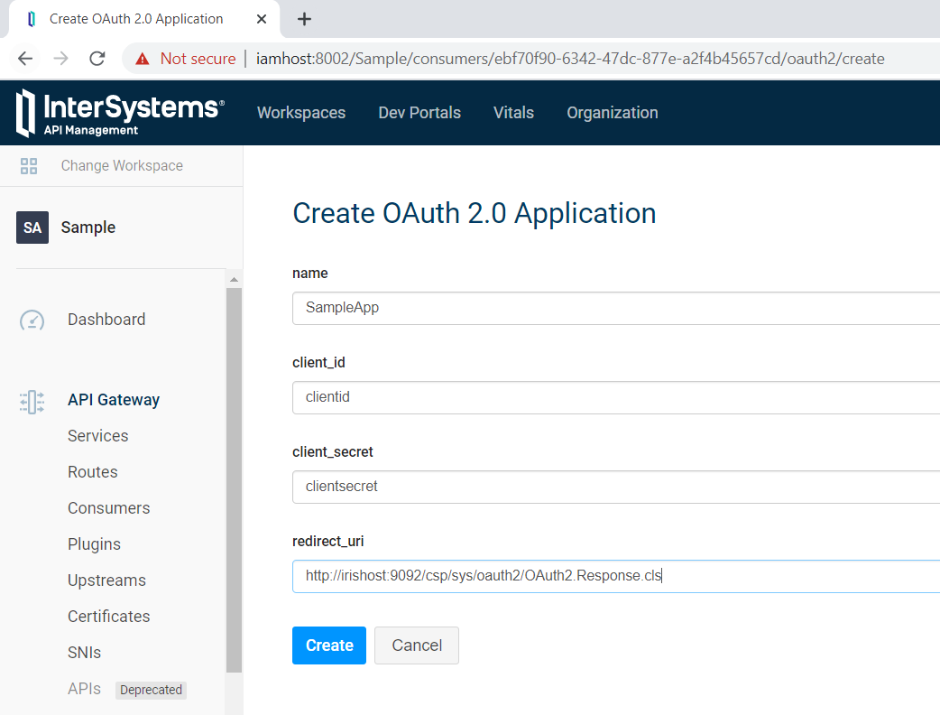 注意,“credential_id”是在ClientApp客户端内部创建的OAuth应用程序(本例中名为SampleApp)的id,“service_id”是应用此插件的“SampleIRISService”的id。