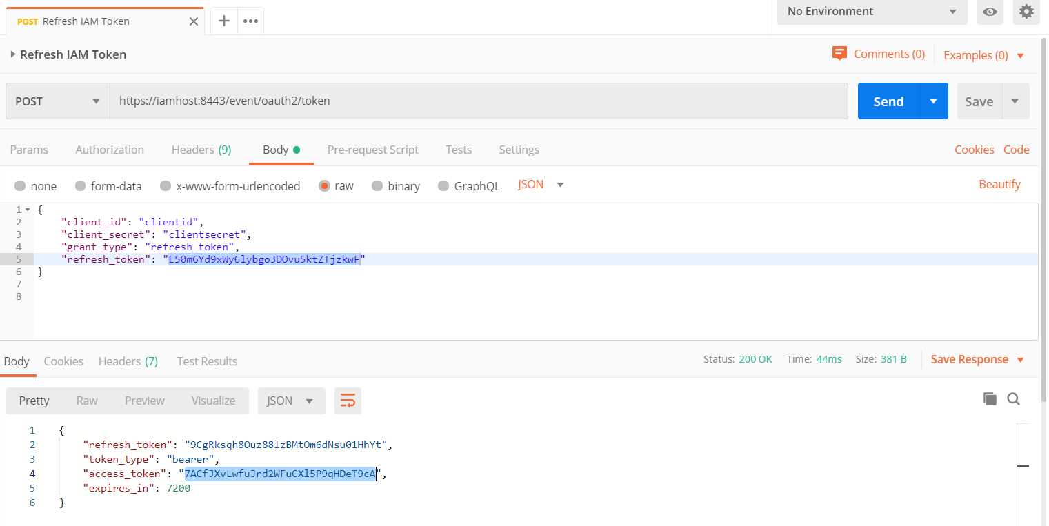 { "client_id": "clientid", "client_secret": "clientsecret", "grant_type": "refresh_token", "refresh_token": "E50m6Yd9xWy6lybgo3DOvu5ktZTjzkwF"}该请求及其响应如下: