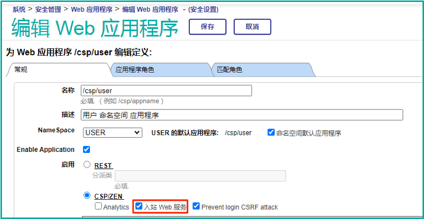 InterSystems数据平台的SOAP服务也是通过Web应用开放的。默认情况下,Web应用是没有开放“入站Web服务”的,也就是说默认Web应用是不能提供SOAP服务的。如果需要开放SOAP服务,需要选中对应Web应用的“入站Web服务”。