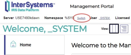 1. 在浏览器中打开 Management Portal (管理门户),使用 InterSystems IRIS Basics: Connecting an IDE(《INTERSYSTEMS IRIS 基础:连接一个IDE 》)的实例适用的URL。